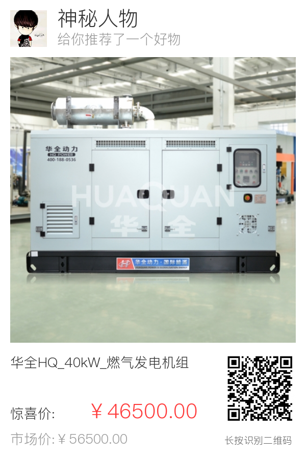 | 1 | 燃气机组 | 出厂标准 | 沼气发电机组 | 华全 | HQ40NF | 华全40kW_燃气发电机组_沼气_开架_四保护 | 台 | 1 | ¥46500 | 标准 |