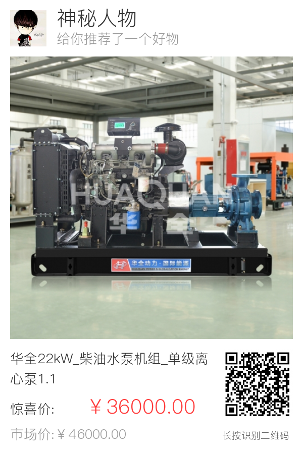 | 1 | 整机 | 出厂标准 | 柴油水泵机组 | 华全 | HQ22WP | 华全22kW_柴油水泵机组_单级泵_拖车防雨棚_普通仪表 | 台 | 1 | ¥36000 | 标准 |