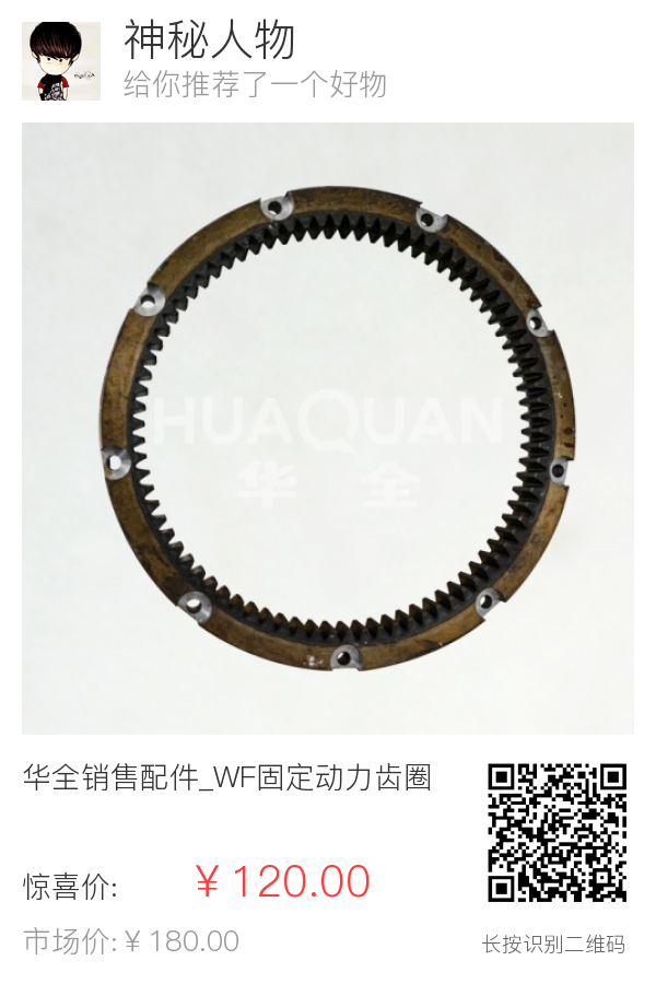 | 1 | 销售配件 | 出厂标准 | 齿圈 | 华全 | CQ | / | 型号太多,无法一一列出,本价格为参考价格,具体价格请咨询客服 (以实际价格为准) | 个 | 1 | ¥120 |