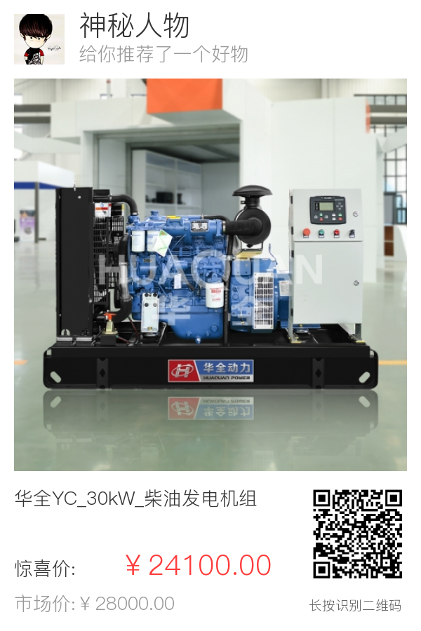 | 配置:YC4V55Z-D20/国二发动机+标配发电机+四保护控制器+静音箱 |