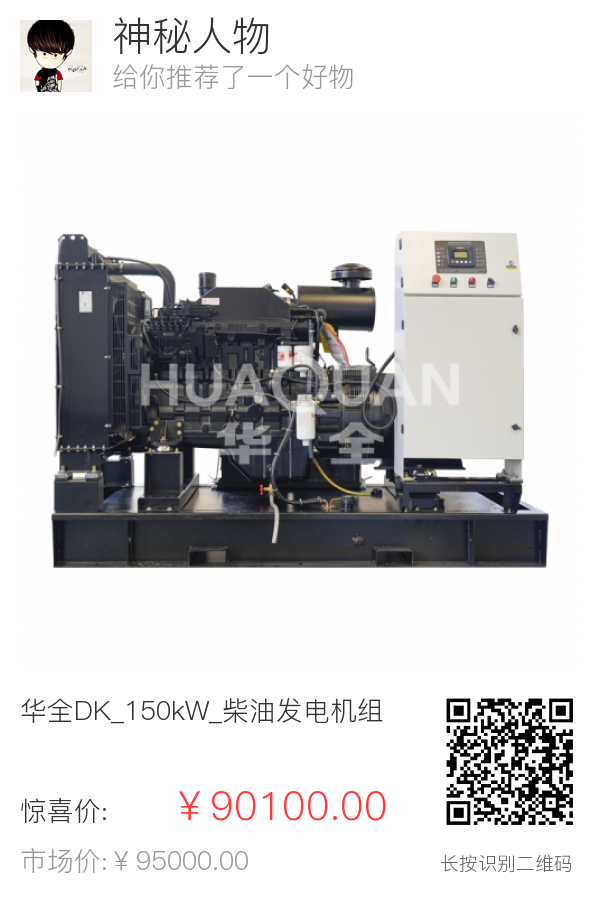 | 配置:QSB6.7-G3/国三发动机+标配发电机+四保护控制器+静音箱 |