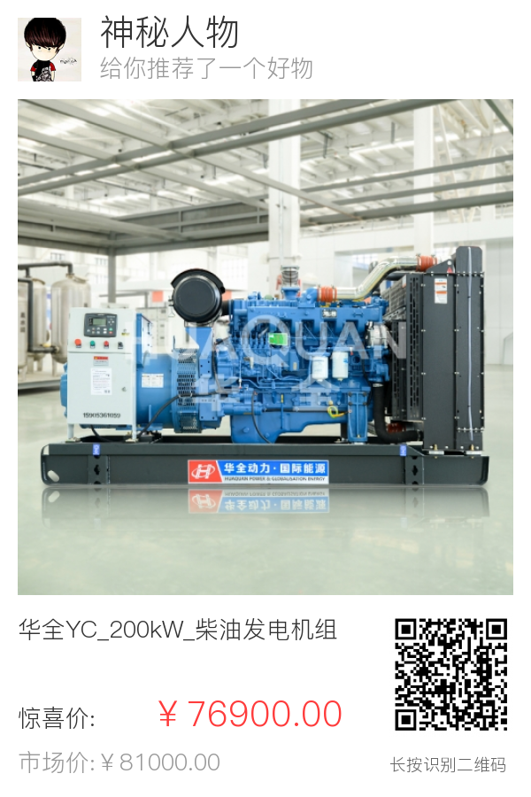 | 配置:YC6MK350L-D20/国二发动机+标配发电机+四保护控制器+静音箱 |