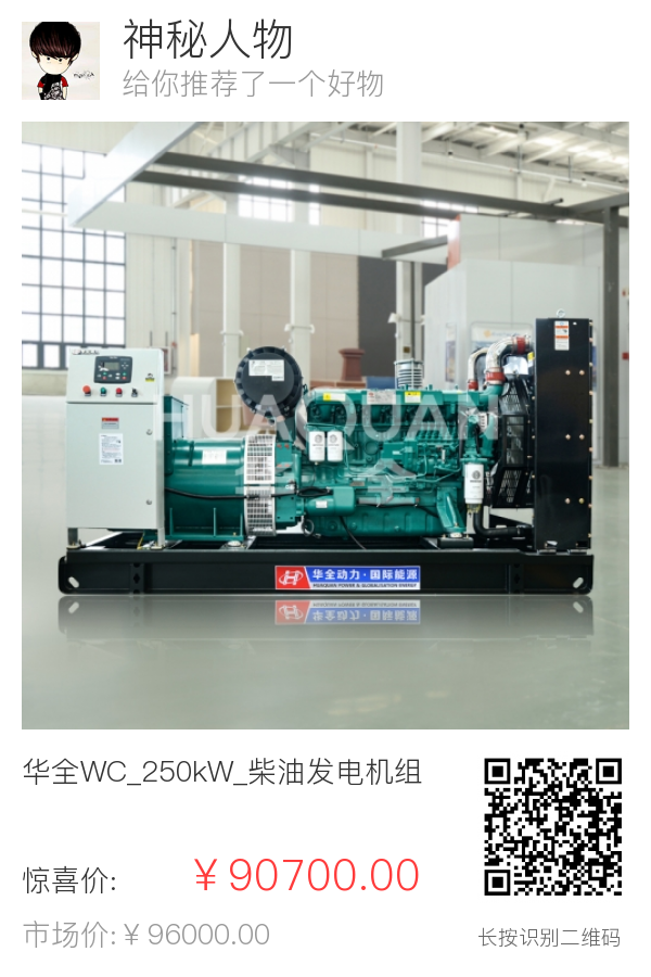 | 配置:WP10D320E200/国二发动机+标配发电机+四保护控制器+静音箱 |