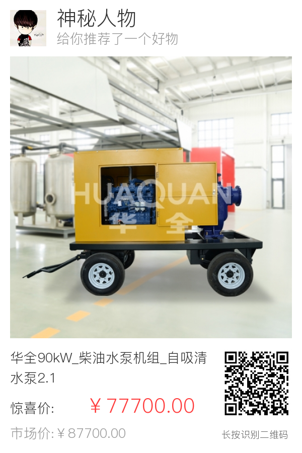 | 1 | 整机 | 出厂标准 | 柴油水泵机组 | 华全 | HQ90WP | 华全90kW_柴油水泵机组_自吸泵_开架式_普通仪表 | 台 | 1 | ¥77700 | 标准 |