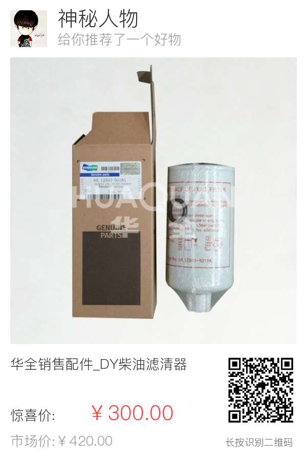 | 1 | 销售配件 | 出厂标准 | 柴油滤清器 | 华全 | CLQ4 | / | 型号太多,无法一一列出,本价格为参考价格,具体价格请咨询客服 (以实际价格为准) | 个 | 1 | ¥300 |