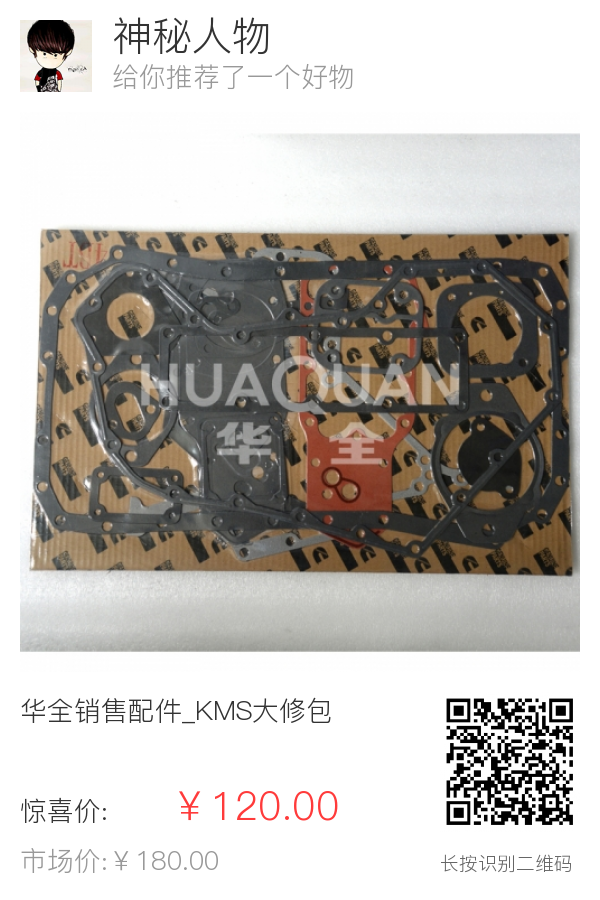 | 1 | 销售配件 | 出厂标准 | KMS大修包 | 华全 | HQPJ_DXB1 | / | / | 个 | 1 | ¥120 |