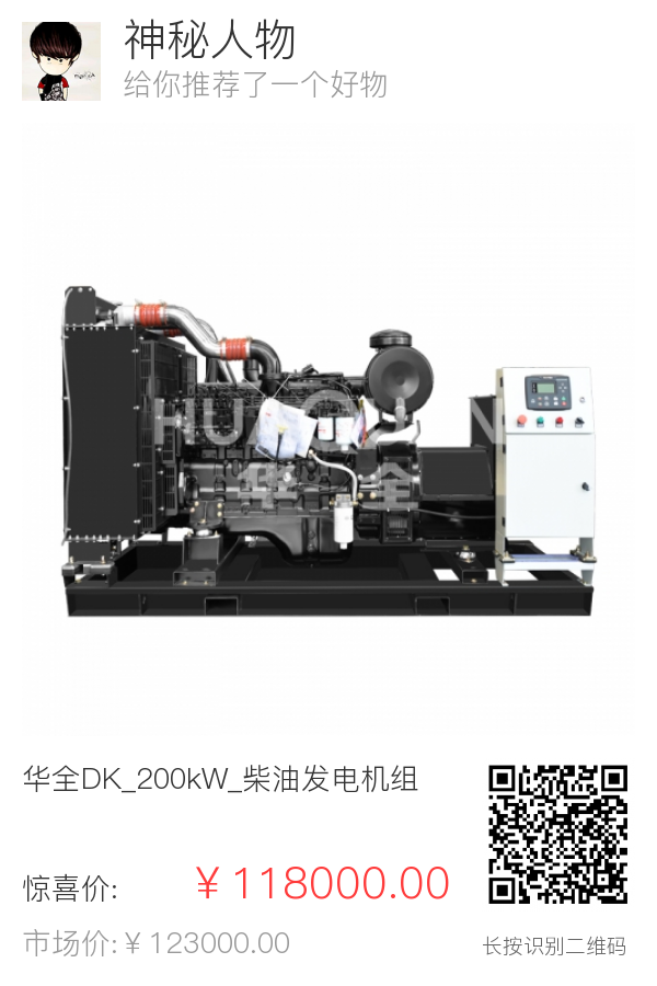 | 配置:6LTAA8.9-G2/国二发动机+标配发电机+四保护控制器+静音箱 |
