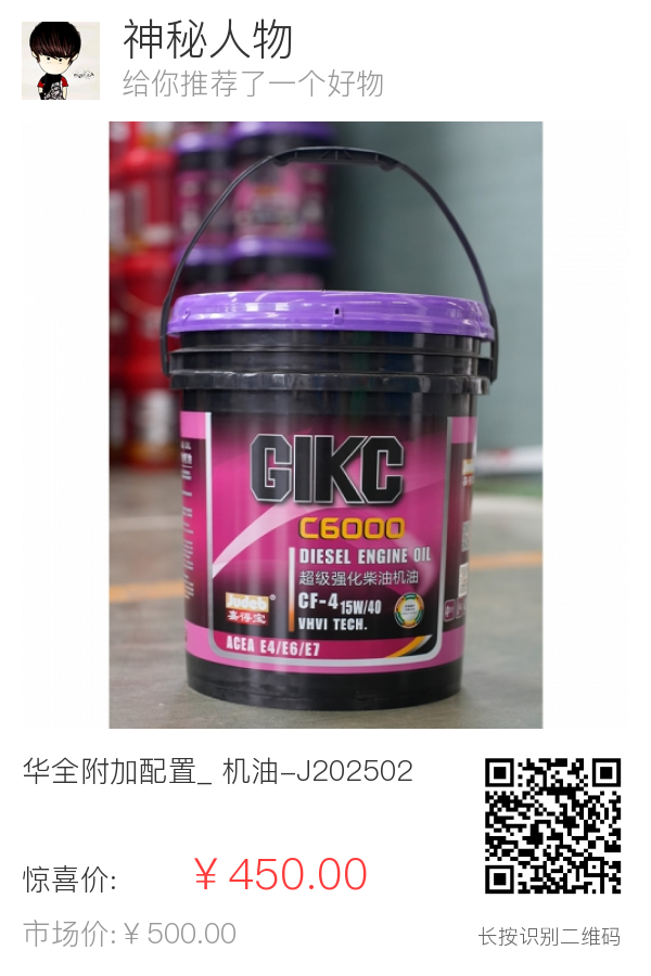 华全系列号:J-202502 玉柴悍虎机油 18L