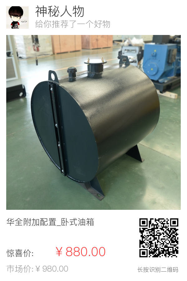 | 其他配置 | 卧式油箱(大) | 华全 | HQPJ_YX | 500L | 外置圆筒油箱、抗压力强、不易变形 碳钢材质 透明液位计 用户还可私人订制 | 个 | 1 | +1020 |