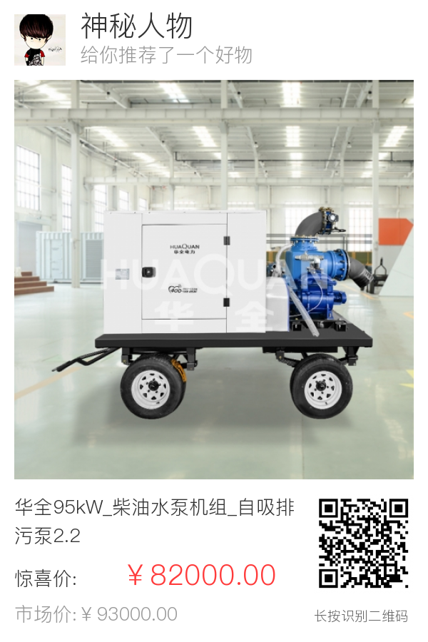| 1 | 整机 | 出厂标准 | 柴油水泵机组 | 华全 | HQ95WP | 华全95kW_柴油水泵机组_自吸排污泵_拖车防雨棚_普通仪表 | 台 | 1 | ¥82000 | 标准 |
