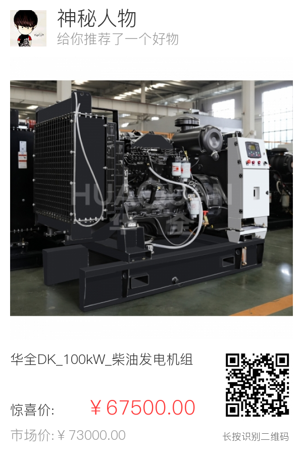 | 配置:6BTA5.9-G2/国二发动机+标配发电机+四保护控制器+移动静音箱 |