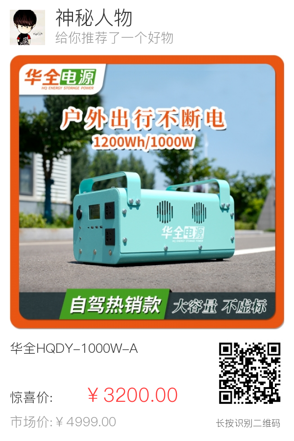 | 产品名称: 户外电源 | 产品型号: HQDY-1000-A |